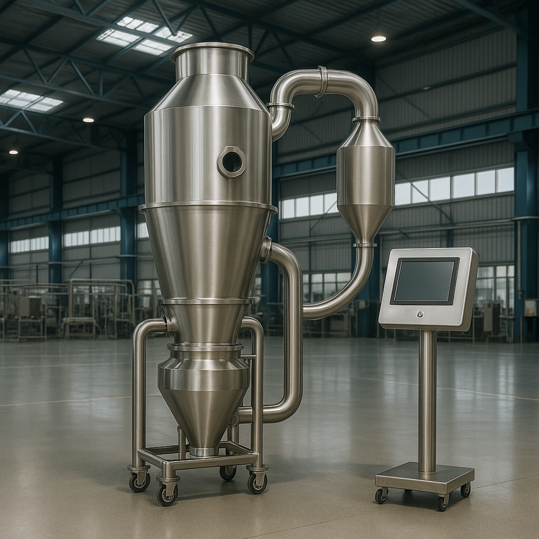Fluid Bed Dryer Controlled airflow and temperature ensure fast, even drying Specs: Capacity: 5–500 kg | Inlet temp: Up to 120°C | Option for top/bottom spray