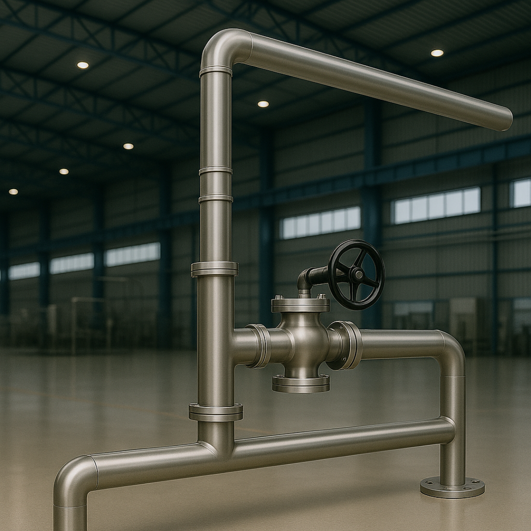 Water Distribution Hygienic water piping for process and utility needs, including RO and WFI lines Specs: Materials: SS316L (electropolished for WFI), PVC, HDPE | Flow-controlled loops | Sanitary fittings